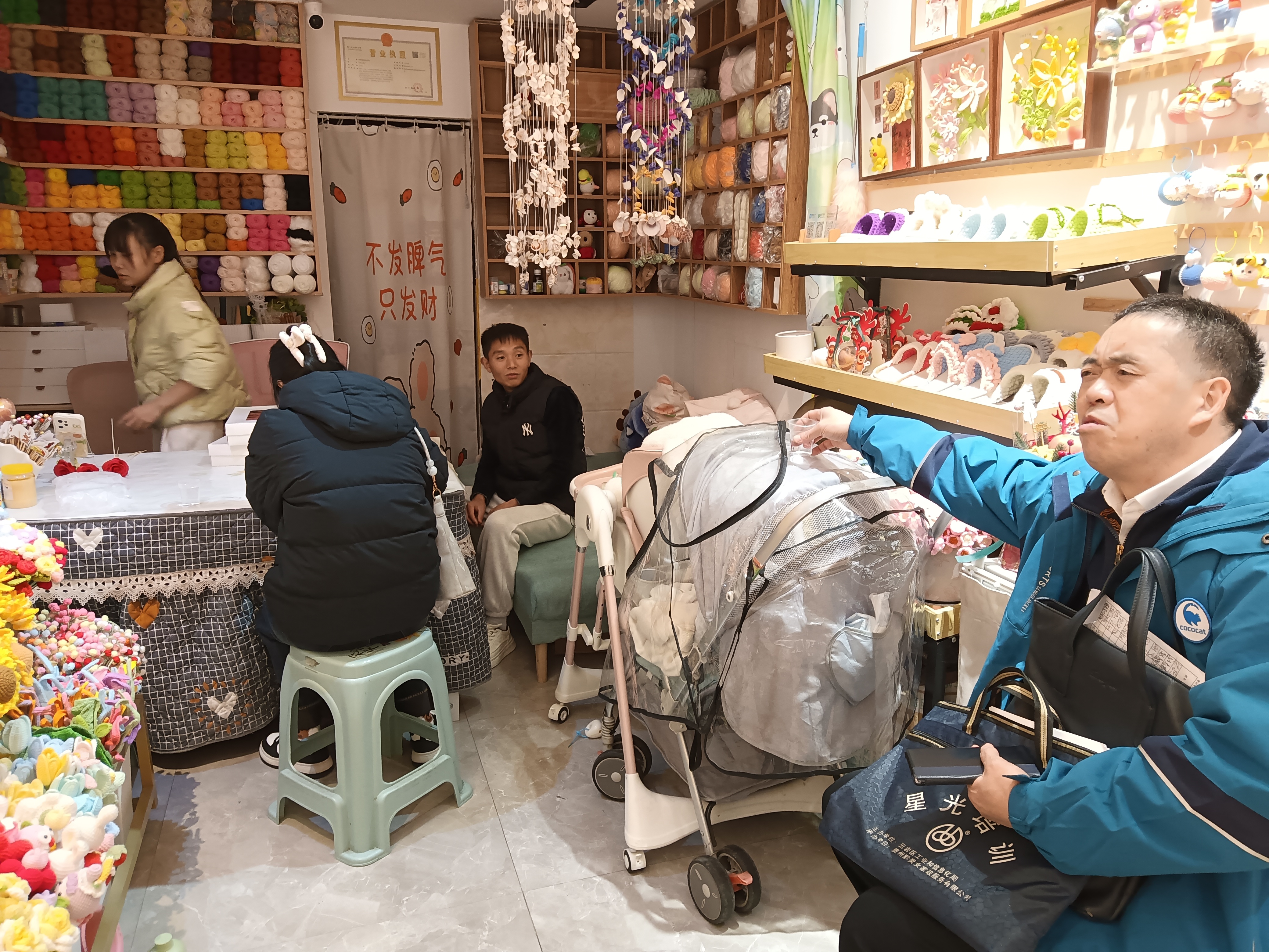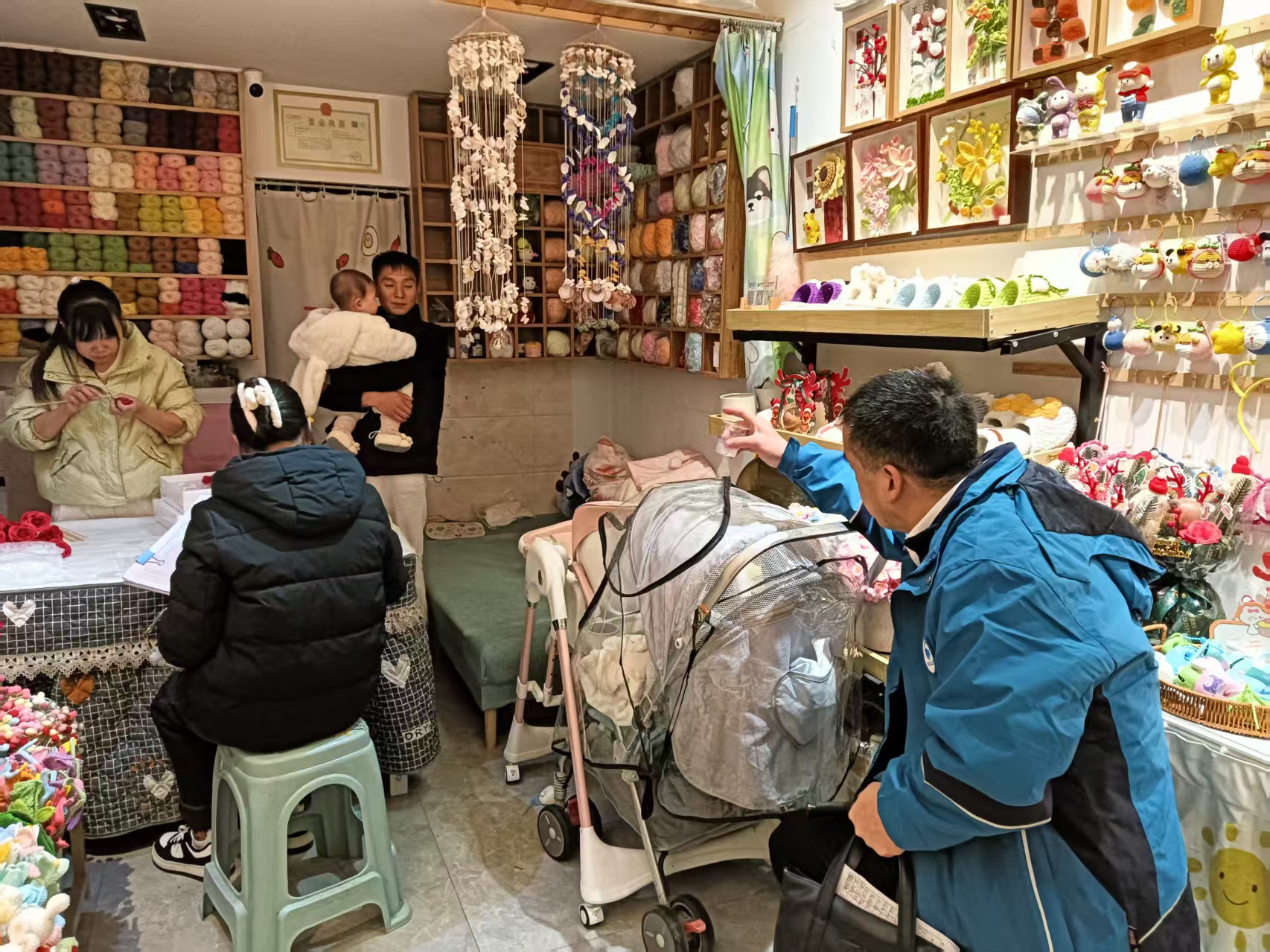 2023年,王双兵立足桐梓海校街道的消费需求,创办阿英针织坊,以“本地针织服饰供给站”为定位,打造“针织制品制造+零售”的一体化模式。项目依托夜郞街的区位流量,聚焦针织/钩针织物制品与服装服饰,填补了区域内“本土针织零售”的缺口。王双兵将养殖期间练出的耐心与细致,融入针织品的选品与制作中,保障产品的实用与质感,适配日常穿搭、居家使用等场景。目前,针织坊已成为夜郞街的特色零售点位之一,既满足了周边居民对针织服饰的消费需求,也实现了个人创业方向的转型。项目以“做实用的本地针织品”为核心,持续探索贴合县域需求的针织零售路径。