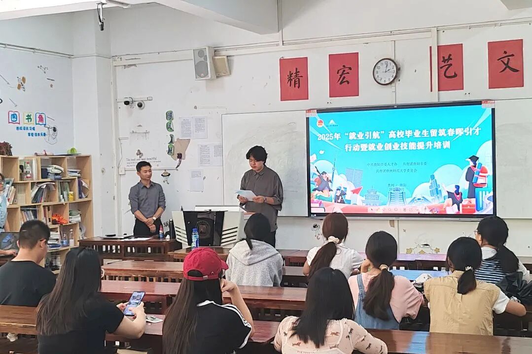 自9月中旬起,由贵阳市委人才办、共青团贵阳市委、省内10所高校团委或招就处主办,“就业引航”高校毕业生留筑服务站、贵阳青年志愿者协会联合承办的2025年“就业引航”高校毕业生留筑春晖引才行动暨就业创业技能提升培训活动在贵州师范大学、贵州财经大学、贵阳学院、贵州理工学院等高校圆满召开。