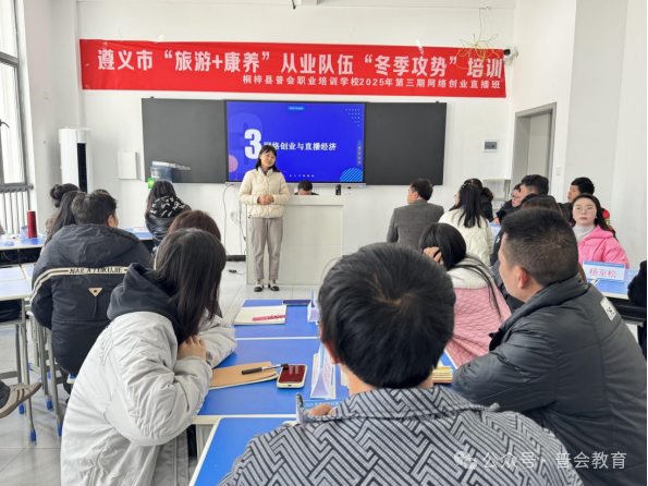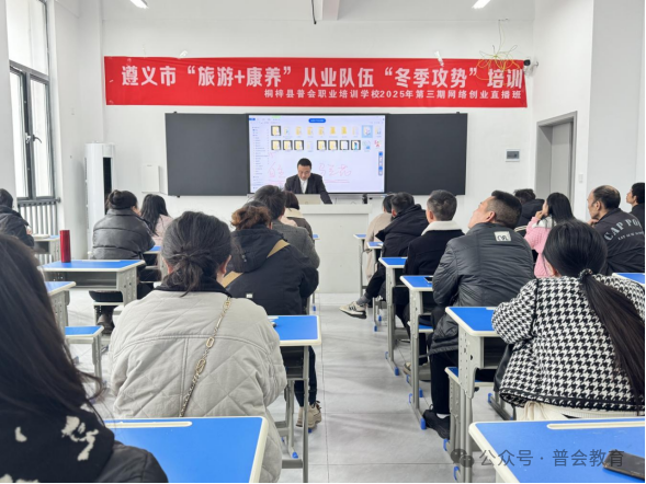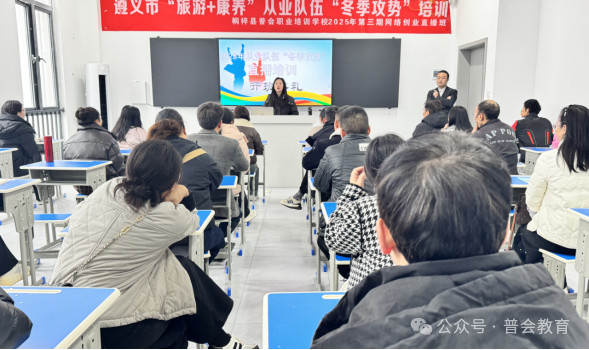 2025年11月24日,由桐梓县人力资源和社会保障局主办、普会职业培训学校承办的2025年第三期创业培训(直播)班,在桐梓县公共实训基地隆重举行开班典礼。