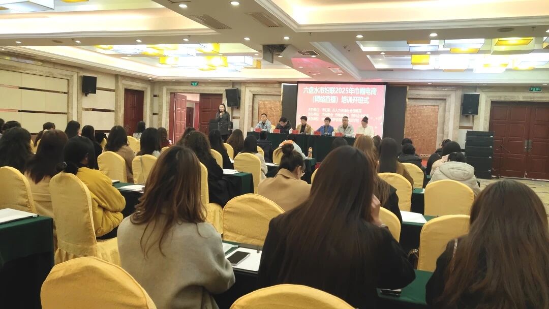 为深入贯彻落实国家乡村振兴战略和数字经济发展要求,提升全市妇女创业就业能力,拓展特色产品销售渠道,助力乡村产业发展。11月24日,六盘水市妇联联合市人力资源社会保障局举办的订单式巾帼电商(网络直播)培训班开班。来自全市“凉都锦绣坊”绣娘、村播、搬迁妇女、女大学生及具有一定创业基础和直播带货意愿的40余名妇女参加培训。六盘水市妇联党组书记、主席杜琼同志出席开班式为学员鼓劲。