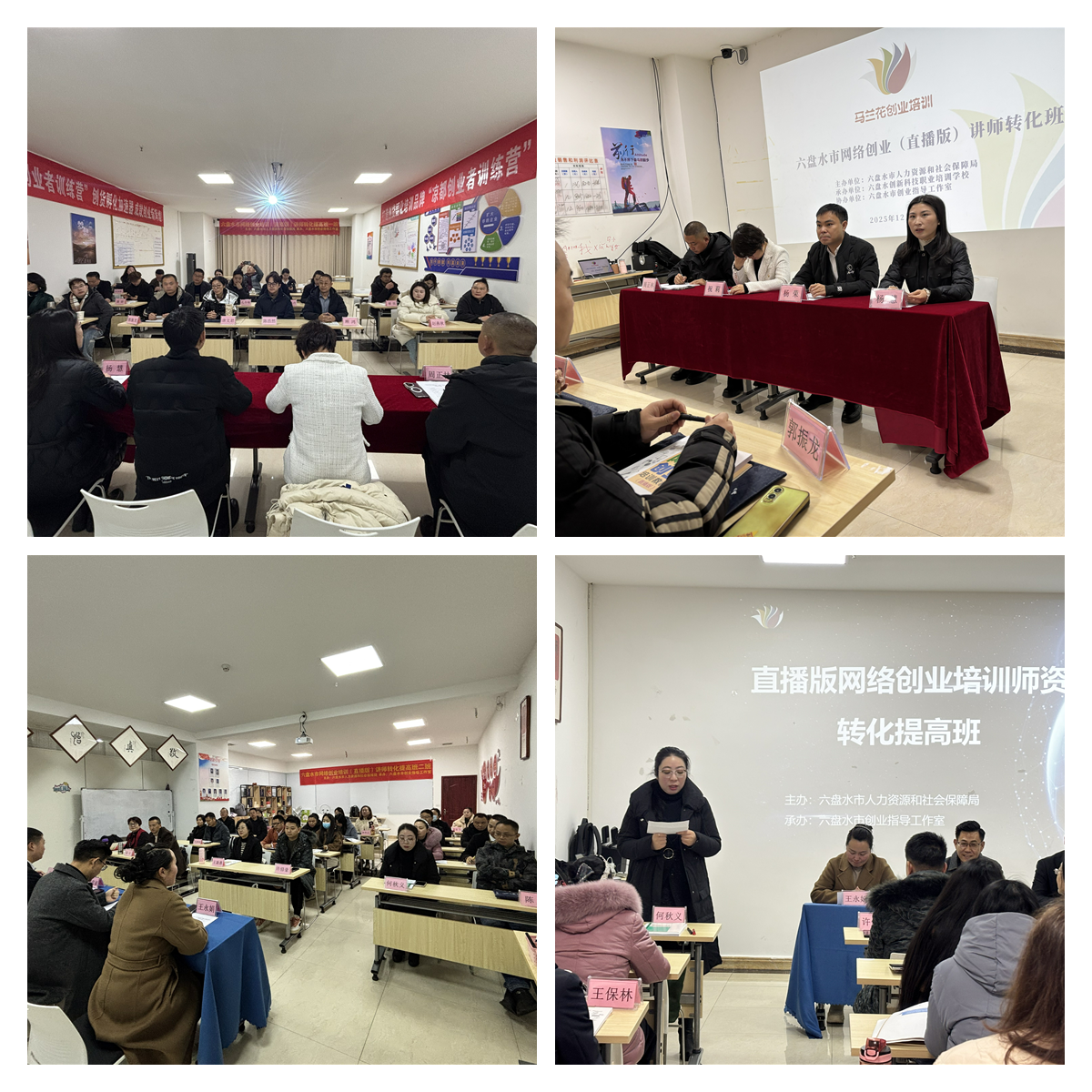 为期三天的六盘水市2025年网络创业(直播版)师资转化提高班于2025年12月29日下午在六盘水市创业指导工作室顺利结业。本次培训由六盘水市人力资源和社会保障局主办、六盘水市创业指导工作室(六盘水市师之道创业指导有限责任公司)承办,采取双班同步教学模式,共有60名来自全市及省内外各培训机构的骨干讲师参与,圆满完成全部培训任务,取得预期成效。