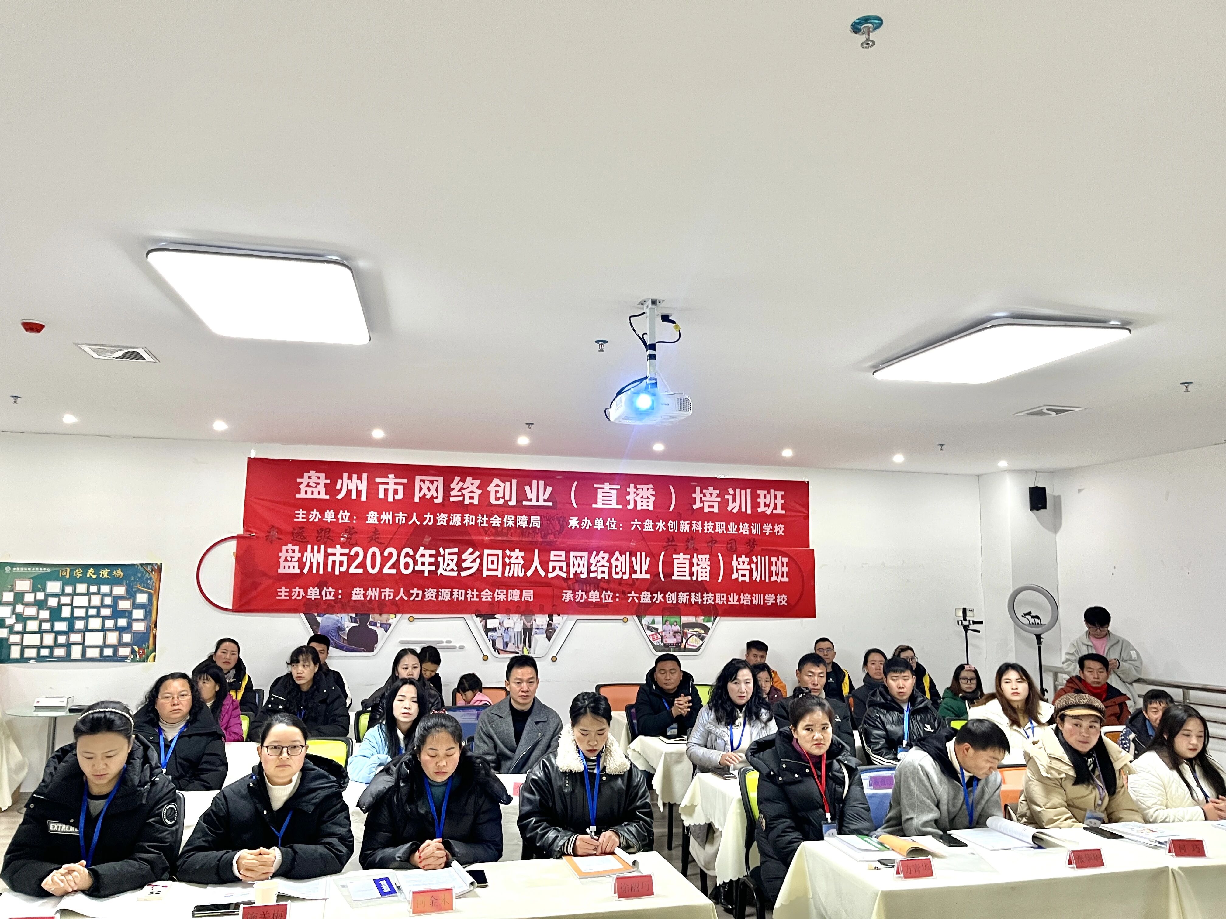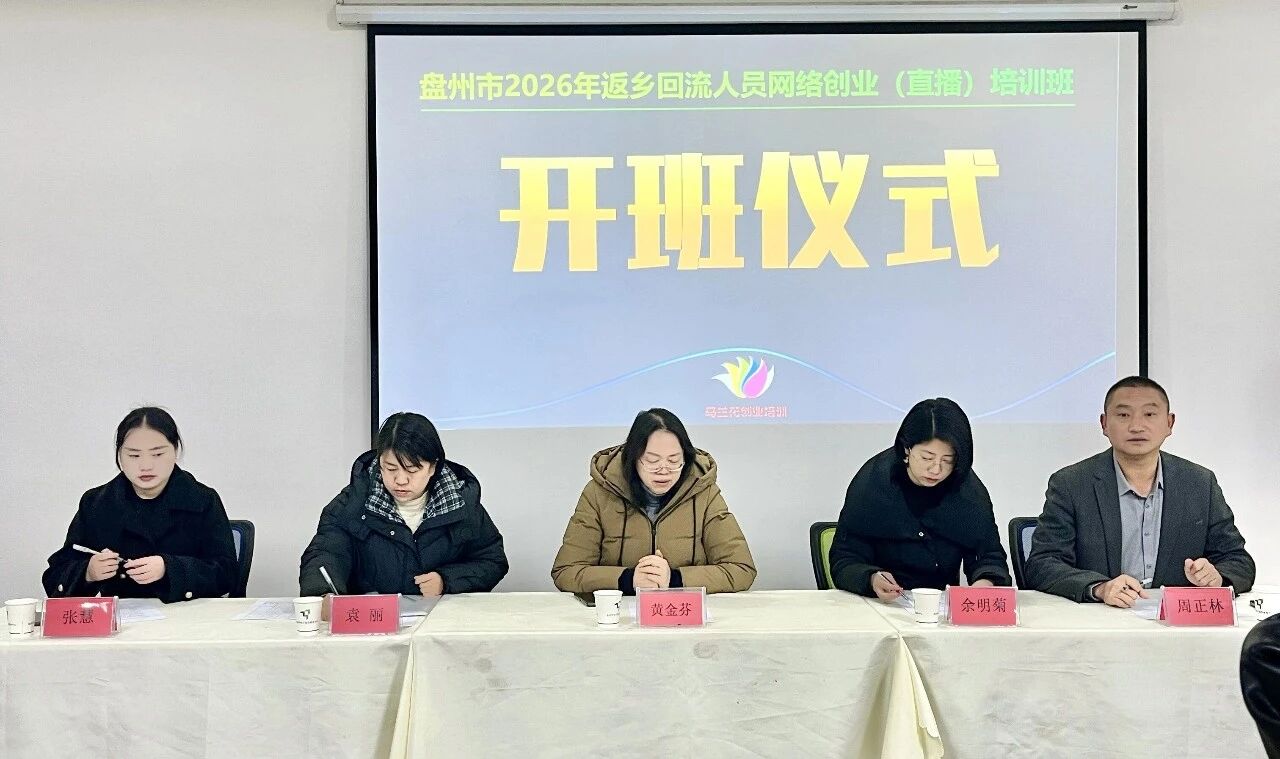 为进一步推动返乡人员创新创业,助力乡村振兴,2026年1月21日上午,由盘州市人力资源和社会保障局主办、六盘水创新科技职业培训学校承办的“2026年盘州市第1期返乡回流人员网络创业(直播)培训班”在盘州市电子商务产业基地正式启动。来自全市各乡镇的30名返乡创业青年齐聚一堂,共同开启为期7天的网络直播创业学习之旅。